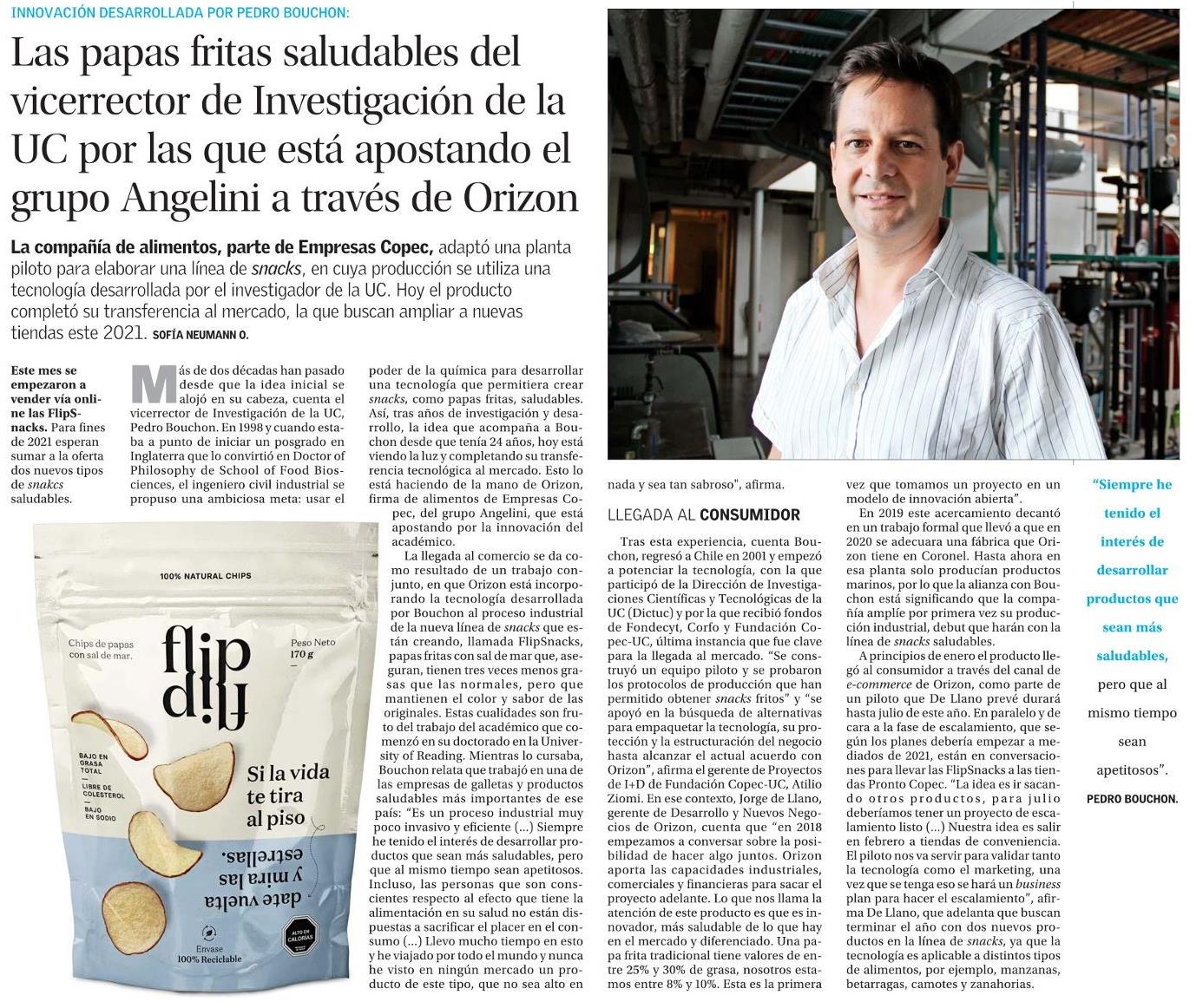 El académico y vicerrector de Investigación de la universidad, Pedro Bouchon, desarrolló una tecnología única para obtener snacks saludables, que conserven mejor los nutrientes, mantengan el color original, sean muy sabrosos al preservar el sabor original de la papa (o materia prima). En efecto, las papas fritas que estarán en el mercado tienen tres veces menos grasa y bajos niveles de sal.