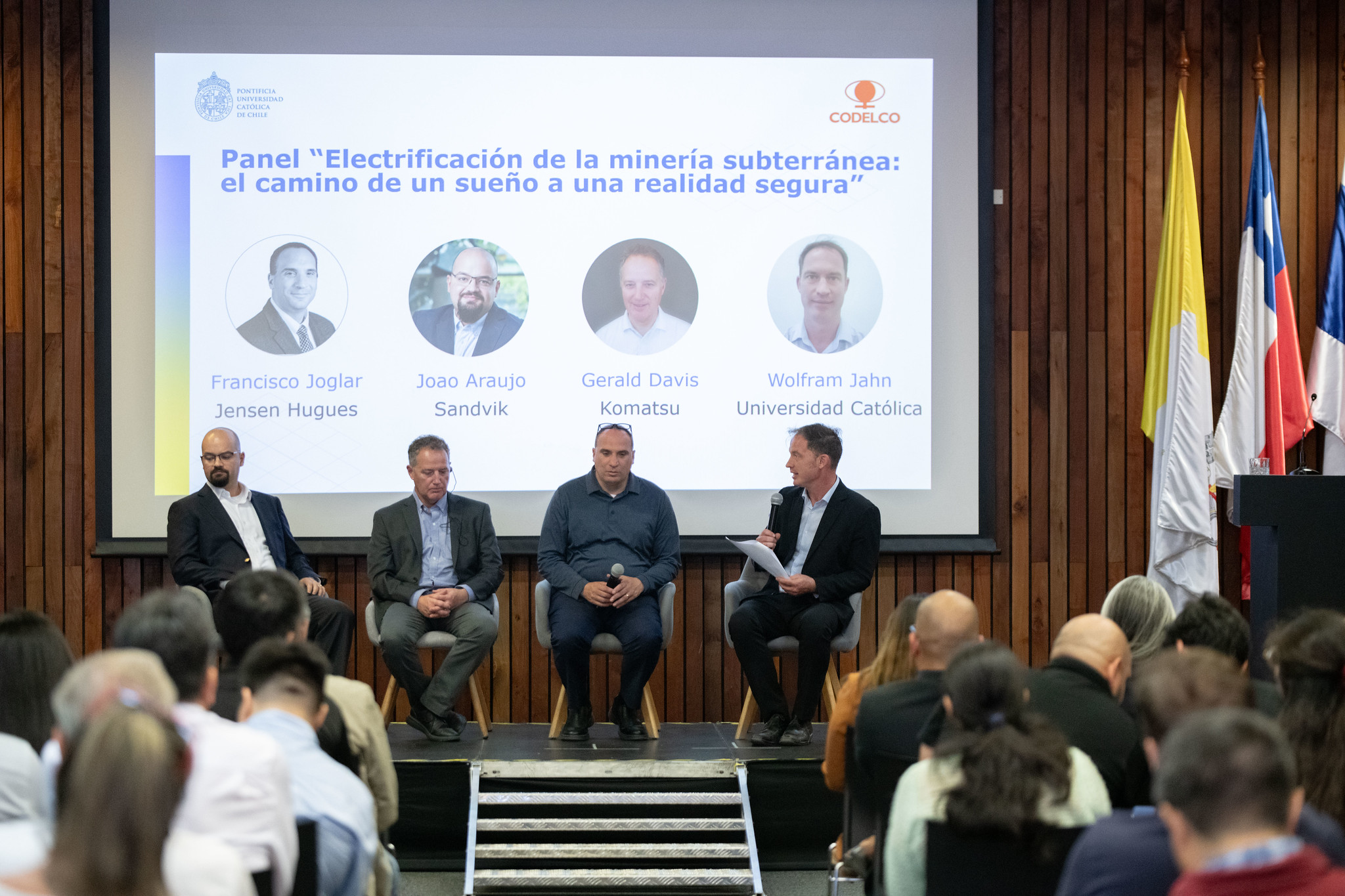 El proyecto desarrollado entre la Pontificia Universidad Católica de Chile y Codelco en torno a la seguridad de las baterías de litio en la minería subterránea fue presentado por el profesor asociado de la Escuela de Ingeniería UC Wolfram Jahn, quien junto a diversos expertos de la industria abordó una temática crucial en el proceso de implementación de energías limpias para el principal motor de crecimiento nacional.